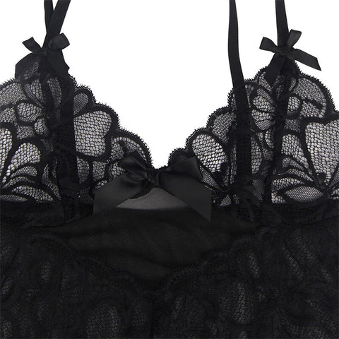 SUBBLIME - BABYDOLL WITH ADJUSTABLE STRAPS AND BLACK SHEER LACE FLORAL PRINT S/M